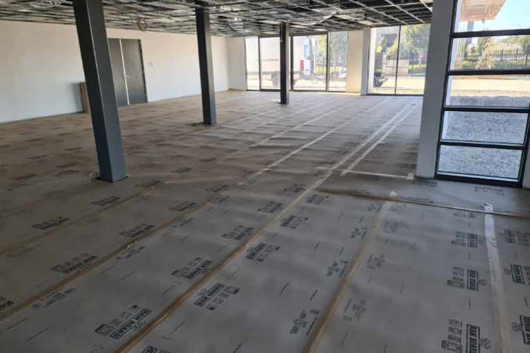 Before anything else, the slab space has to be cleared and cleaned, whether it’s a brand new area or an old one getting a new lease on life. Any old adhesives, paint, coatings or any loose parts should be stripped off/removed before the floor is checked for cracks, moisture issues or uneven spots. This stage sets the tone and is vital so problems don’t appear later.